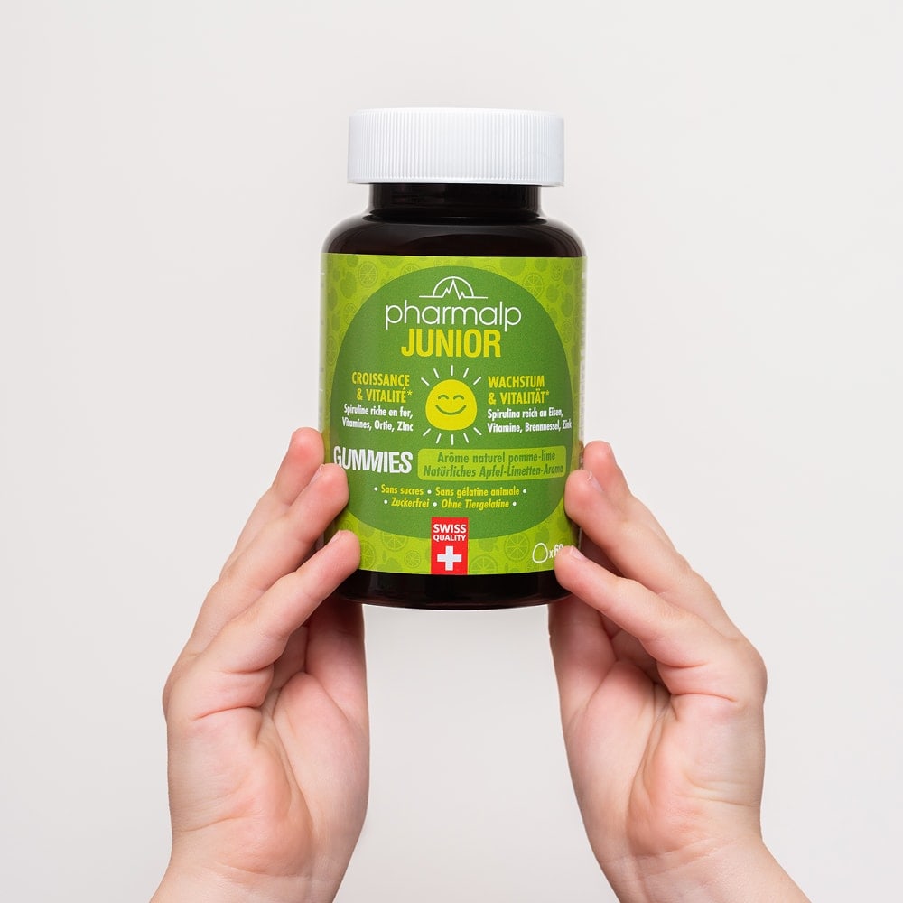 PHARMALP JUNIOR ist das einzige Schweizer Gummy mit Eisen für Kinder. Es enthält auch Vitamin B2, C und D zur Unterstützung von Knochen, Immunsystem und Energie. Der Apfel-Limette-Geschmack ist kindgerecht und fördert die tägliche Einnahme.