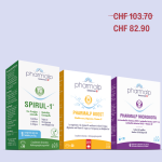 Täglich 1 Tablette Pharmalp Microbiota, Boost und Spirul-1, um die Darmflora zu stärken, die Eisenversorgung zu sichern und mentale sowie körperliche Vitalität zu unterstützen.